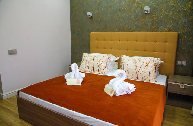 В номере: двуспальная кровать; ортопедический матрас Мебель: шкаф для одежды; багажная тумба; зеркало; стулья; письменный стол