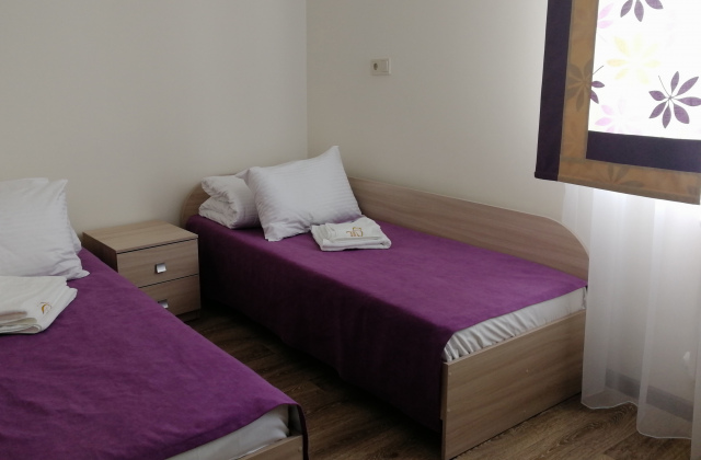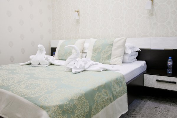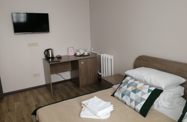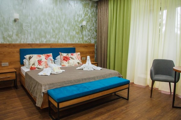 Площадь номера - 48 кв.м. 2 осн. места. 2 доп. места. Мебель: диван раскладной, кровать двуспальная, прикроватные тумбочки, стол, стул, шкаф. Оборудование: гладильная доска, кондиционер, набор посуды, сейф, телевизор, утюг, холодильник, чайный набор посуды, электрочайник. Санузел: с джакузи, тапочки, туалетные принадлежности, фен, халат. Сервис: Wi-Fi бесплатно, смена полотенец, смена постельного белья, уборка номера.